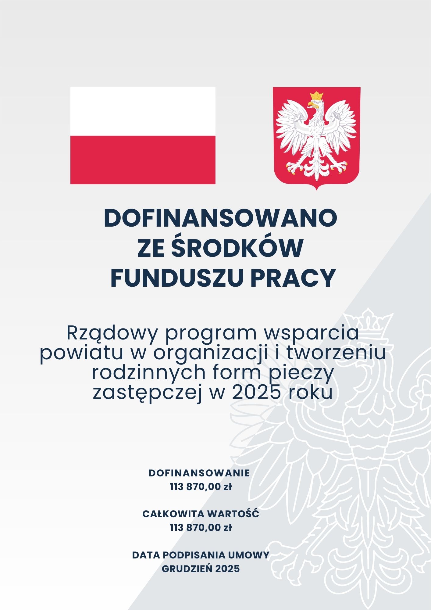Powiat Wałbrzyski w ramach rządowego programu wsparcia powiatu w organizacji i tworzeniu rodzinnych form pieczy zastępczej w 2025 r., otrzymał dofinansowanie ze środków Funduszu Pracy.